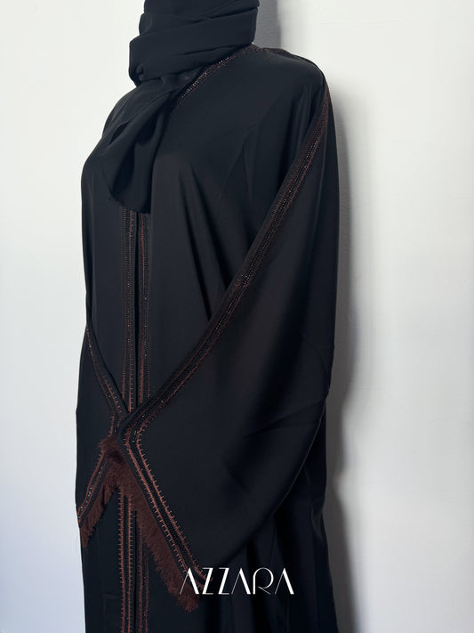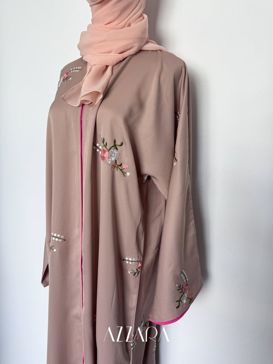 (D090) Sahara Abaya - Brown Flower Embroidery