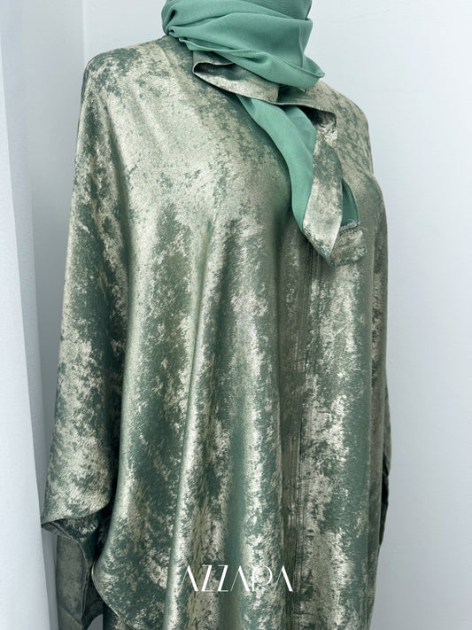 (D050) Sahara Abaya - Green Shimmer Batwing