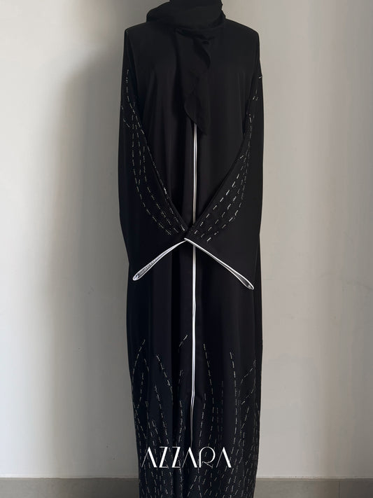 (D089) Sahara Abaya - Silver on Black Shimmer Batwing