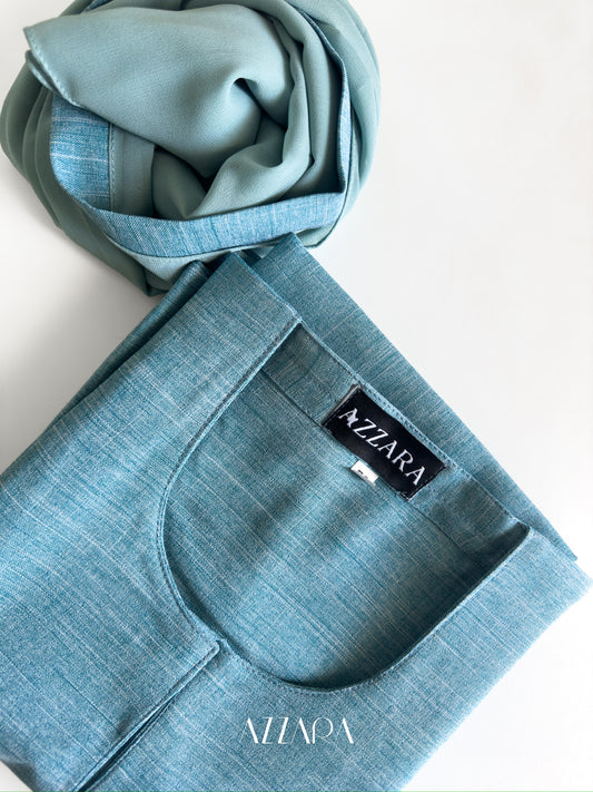 (F017) Modest Essential - Aqua Blue Linen Abaya