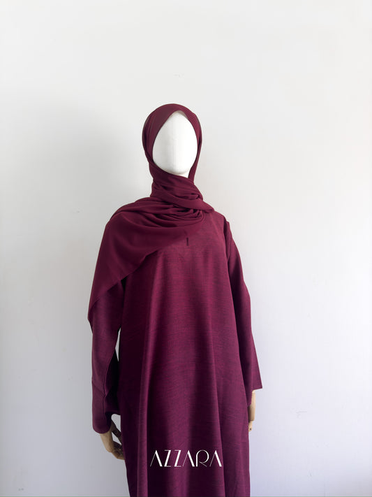 (F019) Modest Essential - Maroon Oak Linen Abaya