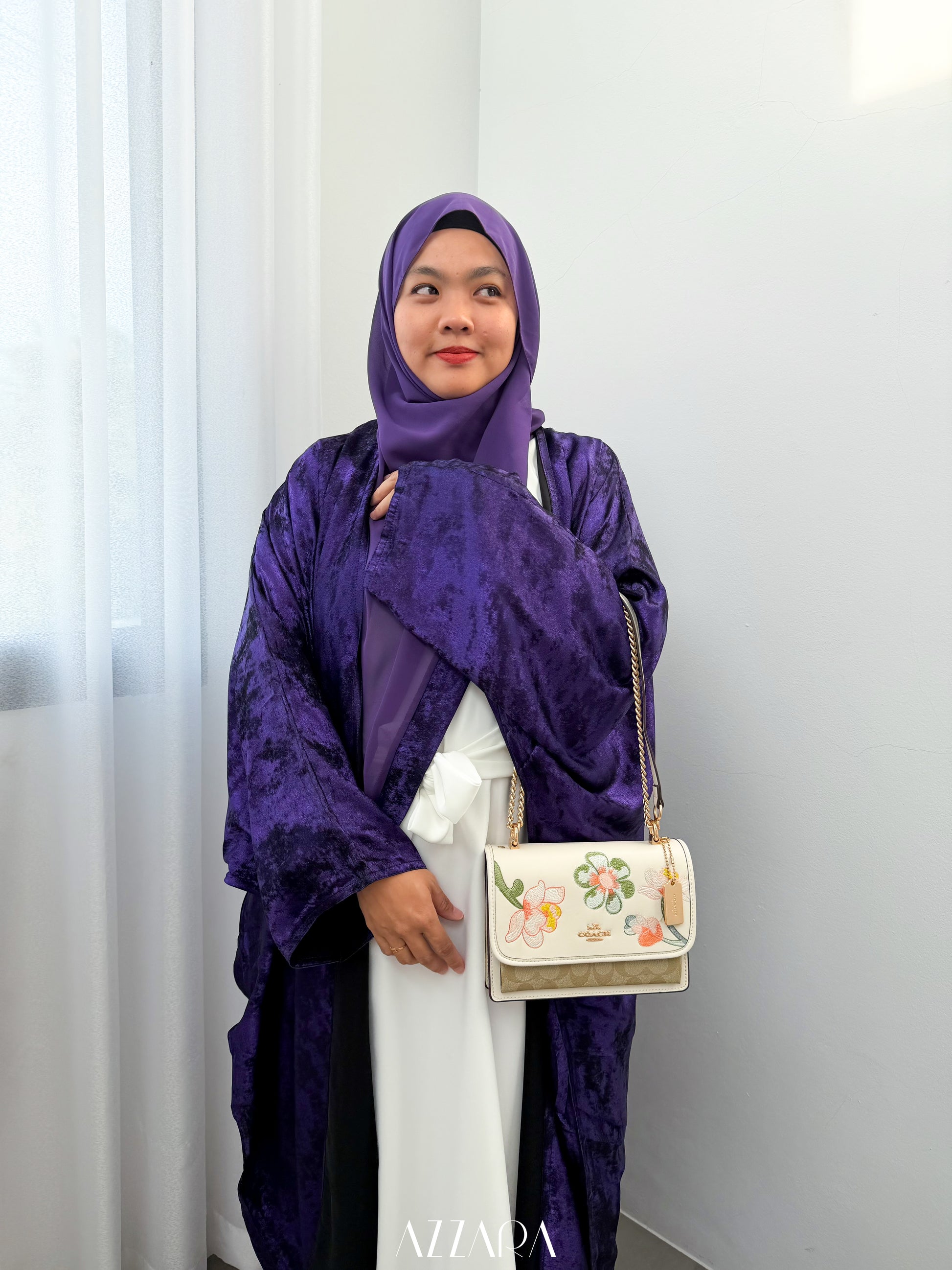 Azzara's twist on our famous Velvet Abaya - Inner with attached belt to create more texture in the fabric