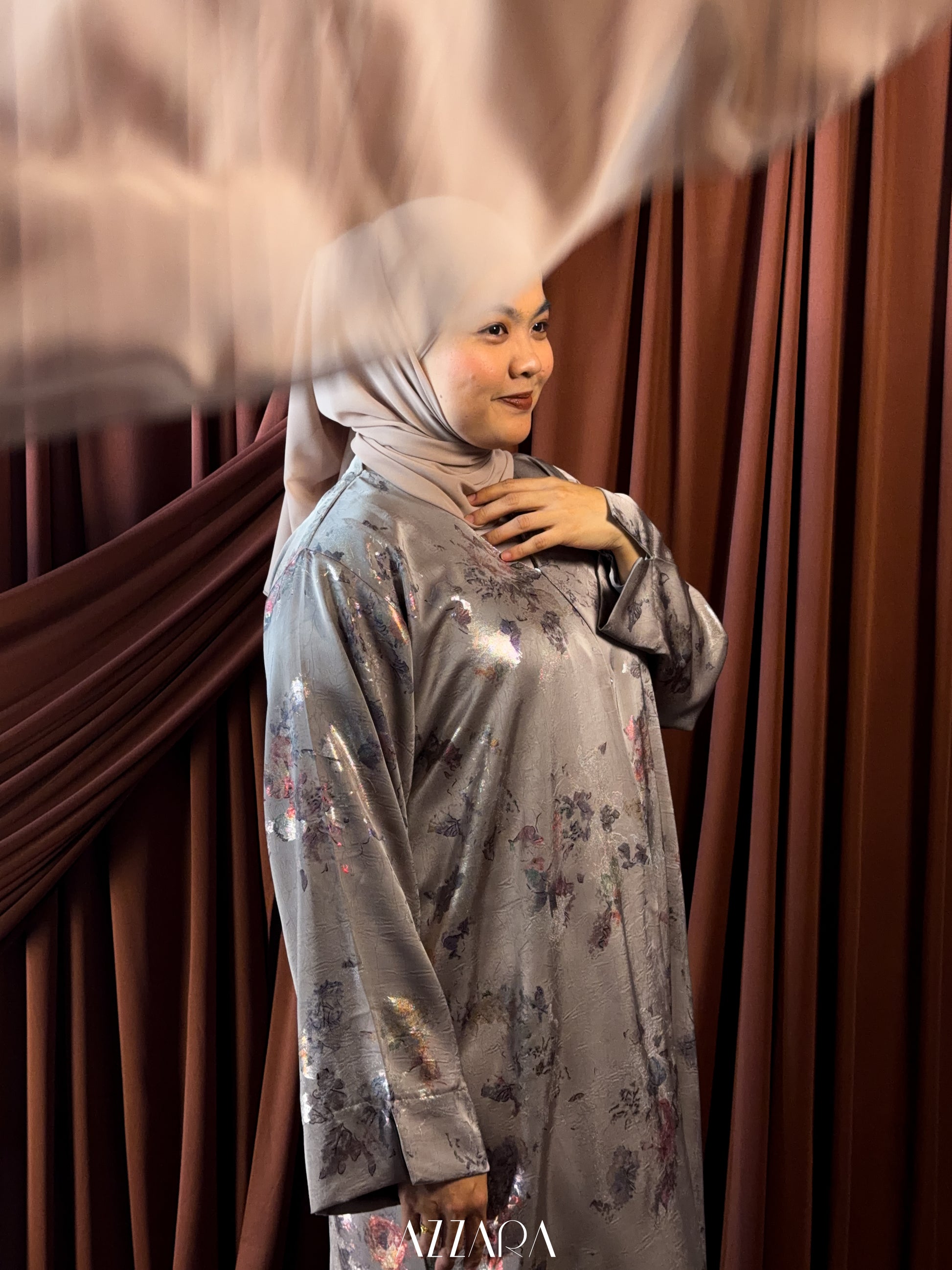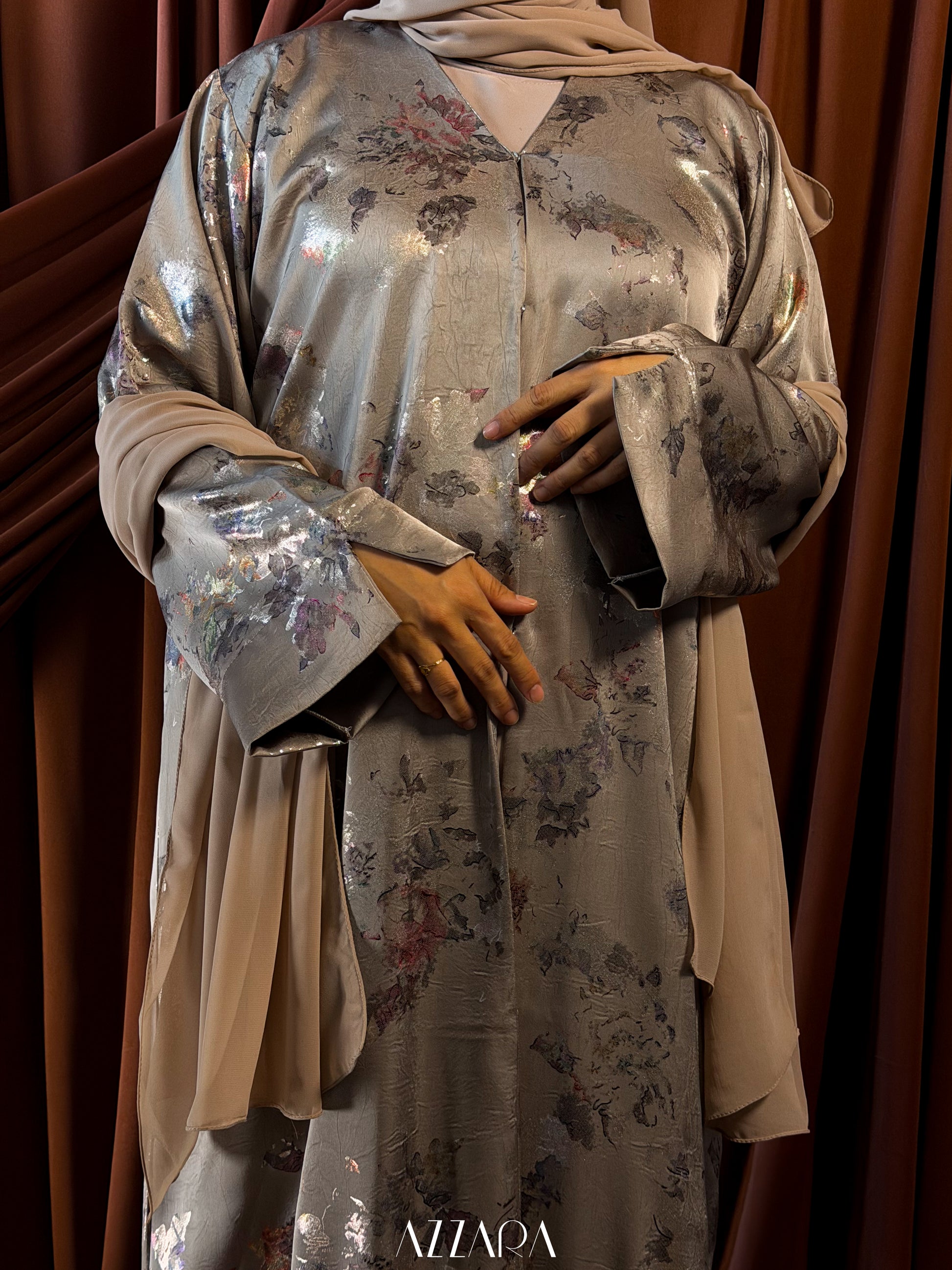 Featuring an outer open abaya style made from a high end jacquard fabrics with golden foil, which is in trend for 2026 Raya collection. Inclusive of matching inner in soft Nida material.