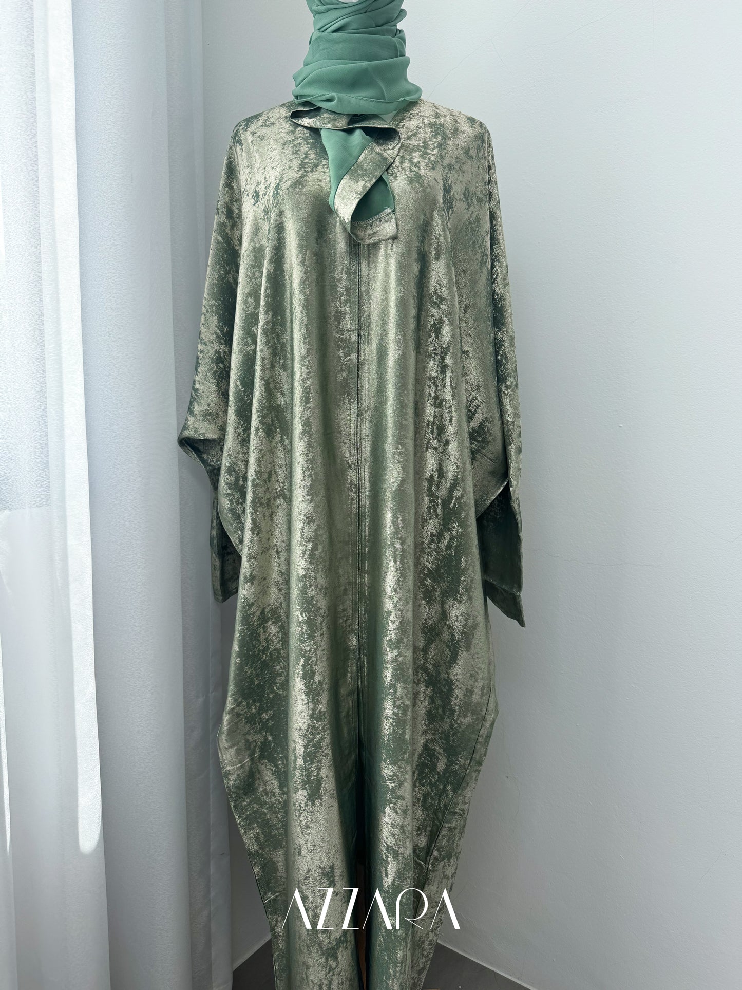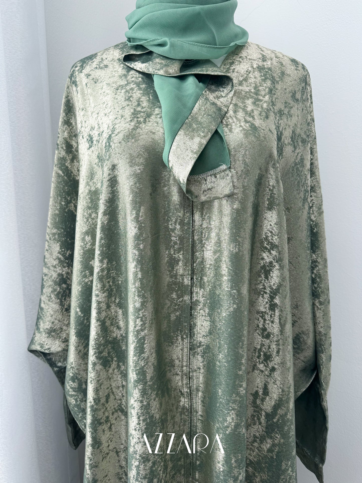 (D050) Sahara Abaya - Green Shimmer Batwing