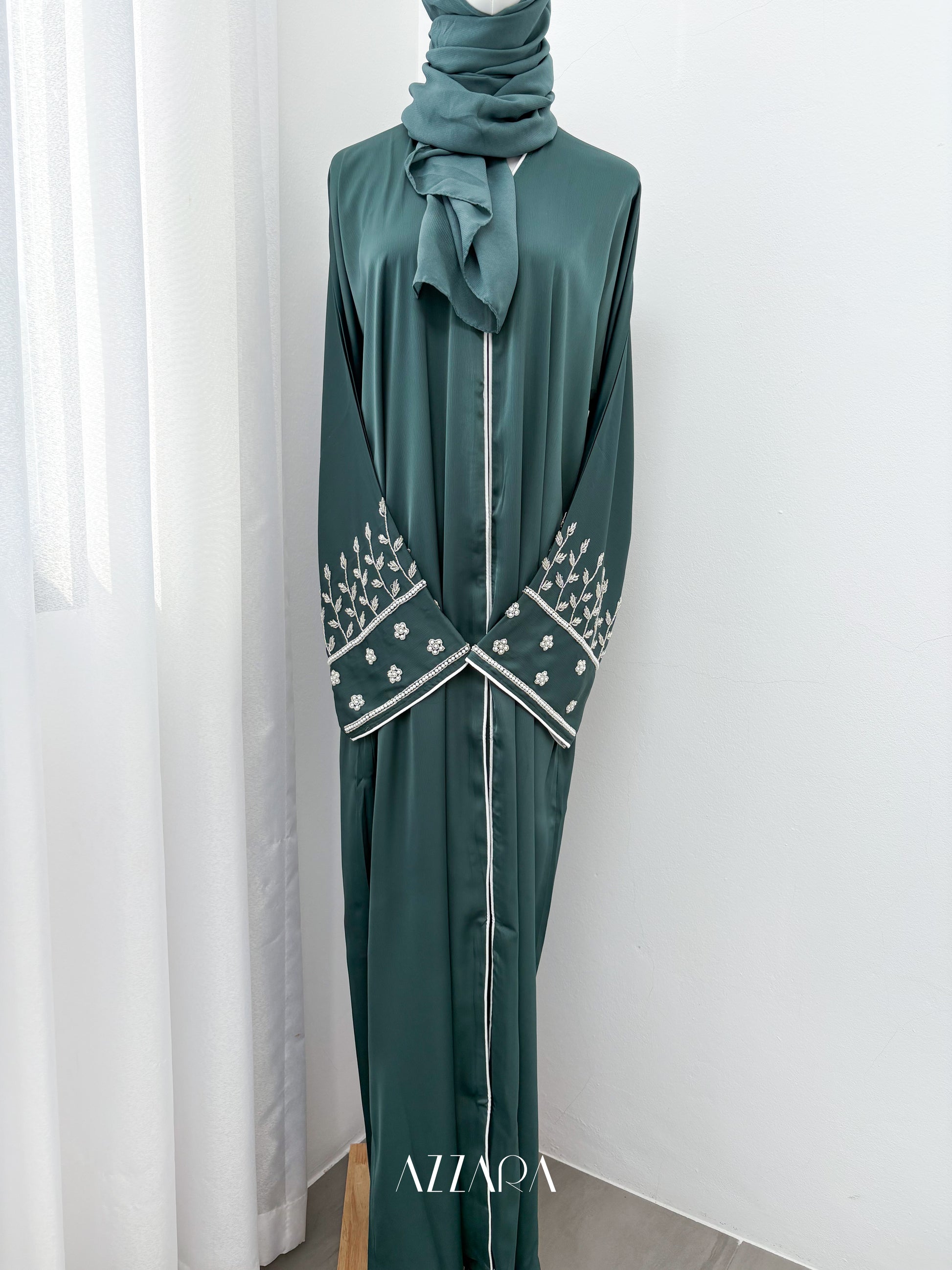(D069) Sahara Abaya - Handworks Abaya (Petrol Cyan)